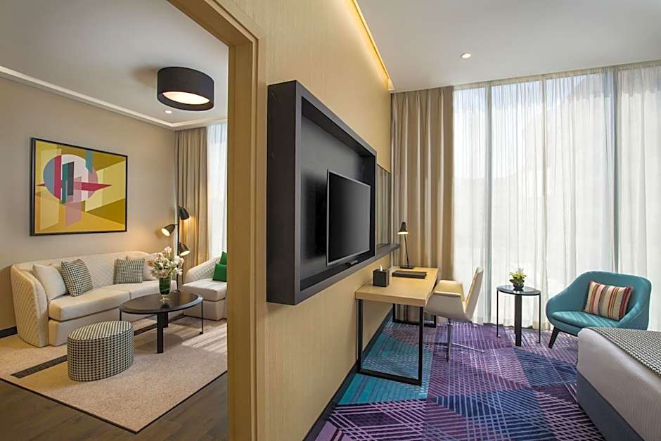 This spacious suite is consisted of of 1 living room, 1 separate bedroom and 1 bathroom with a walk-in shower and free toiletries. This suite is air-conditioned and features a flat-screen TV with cable channels, soundproof walls, a mini-bar and a tea and coffee maker. The unit offers 1 bed.
